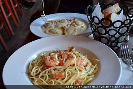 服務生推薦的Lobster Ravioli是這家最貴的主菜, 雖然份量比Giacomo's Ristorante少,但是精緻度高點,如果只比這道菜其實我還比較喜歡吃這家的。兩人各點一道主菜加上麵包份量還是足夠的。這家店用餐環境比家庭式意大利餐廳好多了,可以坐著聊聊天,我看隔壁桌一對50歲上下的男女就點個沙拉,一份三明治樣的麵包,喝著酒類飲料也很愜意。